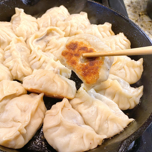 When wrappers or filling run out, heat 2-3 tablespoons of oil in a non-stick or heavy bottomed skillet. When the oil is shimmery about 1-2 minutes, carefully arrange the potstickers in the pot. You will probably need to cook in 2 batches. Without moving them let them cook and brown the bottoms for about 1-2 minutes. Add 1 cup of water then cover and cook for 5-6 minutes. After 5-6 minutes, carefully lift off the cover and check first to see if the water has been absorbed/evaporated, then next to see if the bottoms are browned and crispy. If neither, leave uncovered to let moisture evaporate. Potstickers are done when bottoms are golden brown and crispy. Turn off heat and transfer to a serving plate. Serve hot with a dipping sauce from the Mix and Match page. Enjoy!