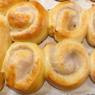 Gently deflate the dough. Roll out dough into a rectangle approximately 10"x12". Spread filling over the dough then roll up along the long side. Pinch edges closed then cut into 12 pieces. Place on a sheet tray lined with parchment or greased pan, cover lightly with a damp towel and let rest for 40 to 50 minutes, until puffy.